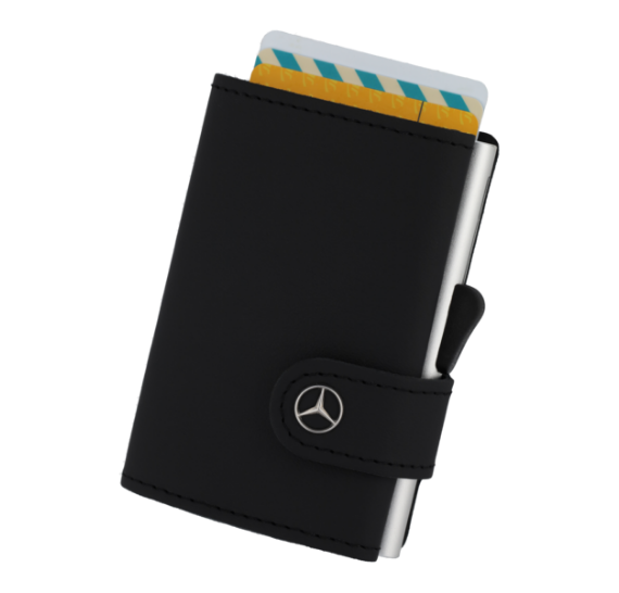 El llavero con aspecto de fibra de carbono presenta el logotipo AMG en la parte delantera y un detalle rojo alrededor del borde. En términos de funcionalidad, este llavero tampoco defrauda. Además del anillo dividido plano, hay tres anillos divididos en miniatura adicionales para la extracción o el reemplazo rápido de llaves individuales.