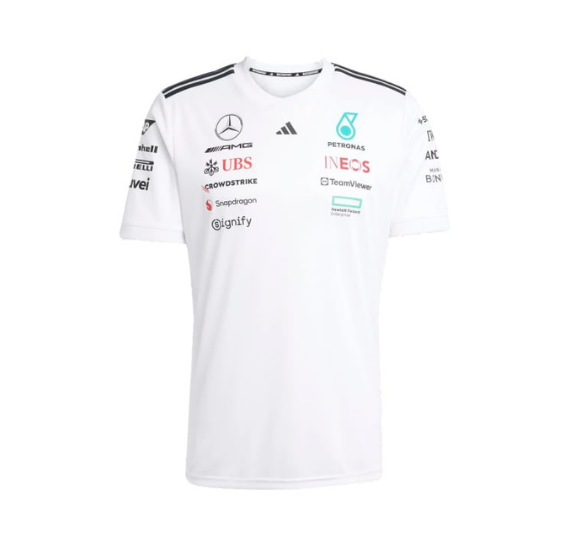 Camiseta oficial 2025 MERCEDES-AMG PETRONAS F1 TEAM con tecnología Aeroready, diseño transpirable y detalles exclusivos que reflejan el espíritu de la pista