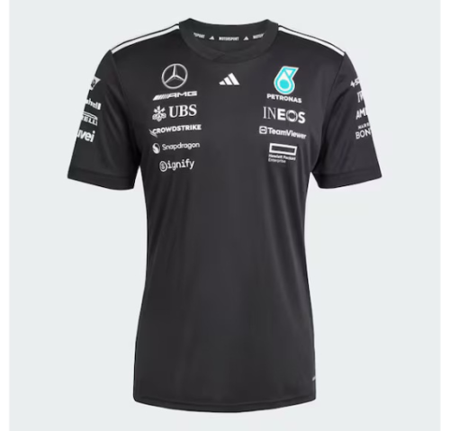 Camiseta oficial de piloto MERCEDES-AMG PETRONAS F1 2025 para mujer, ideal para el ocio y mostrar tu pasión por las carreras. Con logotipos del equipo y patrocinadores, detalles en los hombros y tecnología Aeroready que garantiza transpirabilidad y confort. Fabricada 100% en poliéster por Adidas.