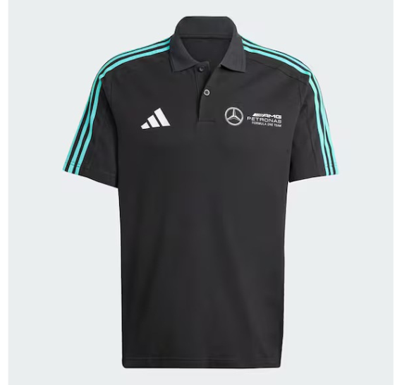 Polo deportivo de caballero MERCEDES-AMG PETRONAS F1, ideal para el tiempo libre. Confeccionado en 100% algodón, ofrece máxima comodidad y un diseño dinámico con detalles icónicos en hombros y mangas. Incluye los logotipos del equipo y de Adidas.