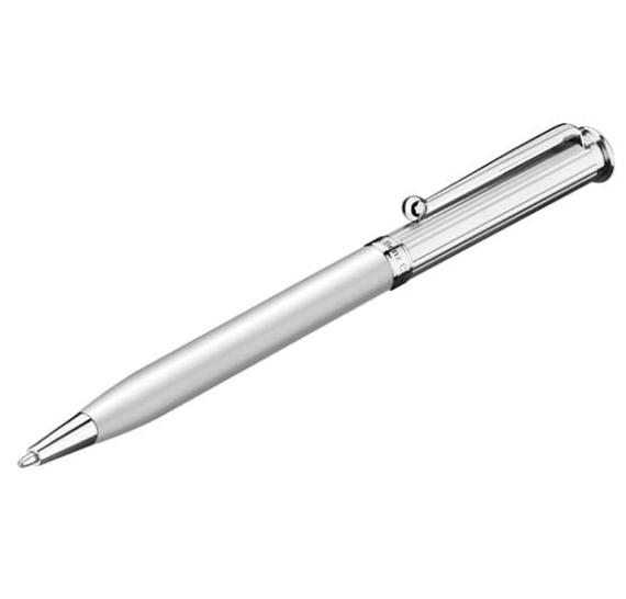 Bolígrafo metálico elegante de la Colección Mercedes-Benz Classic, ideal para trabajo o uso diario. Presenta detalles distintivos como la estrella y el logotipo estampados en el capuchón y el grabado “Mercedes-Benz Classic” en la anilla central. Incorpora mecanismo de giro para una salida de mina rápida y cómoda.