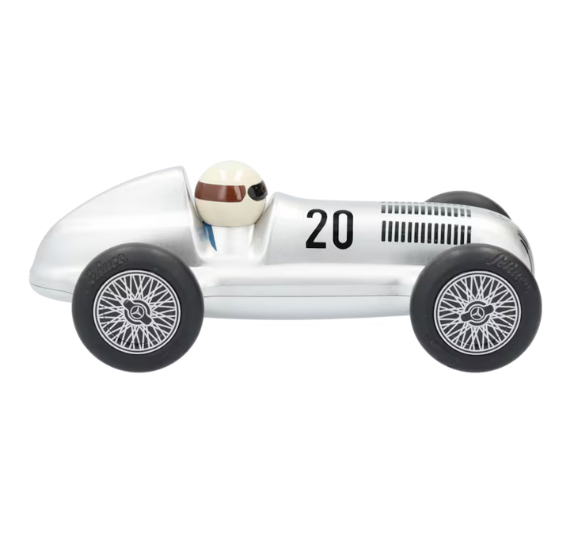 Coche de juguete “my first Silberpfeil” en color plata, fabricado en plástico de alta calidad y Designed in Germany. Con 16 cm de longitud, es ideal para estimular la creatividad de niños a partir de 2 años. Incluye embalaje Mercedes-Benz Classic y está producido por Schuco.