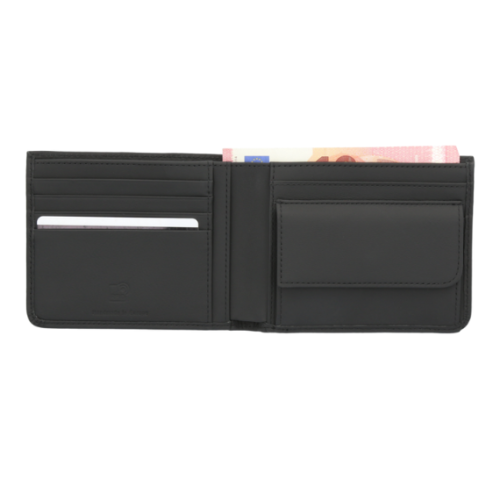 Cartera de cuero bovino premium, fabricada con el mismo material utilizado en el interior de la Clase S de Mercedes-Benz. Cuenta con compartimentos para billetes, monedas, tarjetas y documentos, ofreciendo una organización completa. Incluye protección RFID que evita el escaneo no autorizado de tarjetas. Fabricada en Alemania, combina seguridad y acabados de alta calidad.