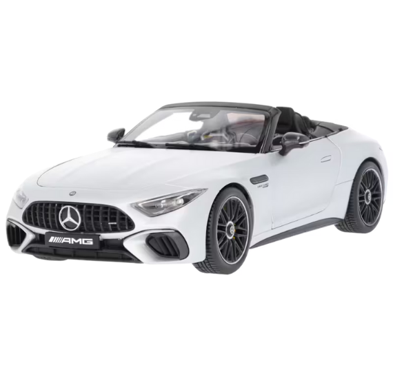 Maqueta a escala 1:18 del Mercedes-AMG SL 63 Roadster R232, fabricada en fundición de cinc con más de 120 piezas detalladas y pintada en el color auténtico. Reproduce fielmente exterior e interior, con puertas, capó y portón trasero practicables, además de capota incluida por separado. Montada a mano, basada en datos CAD originales para máxima precisión. Se entrega en embalaje Mercedes-AMG con destornillador y guante para una manipulación segura.
